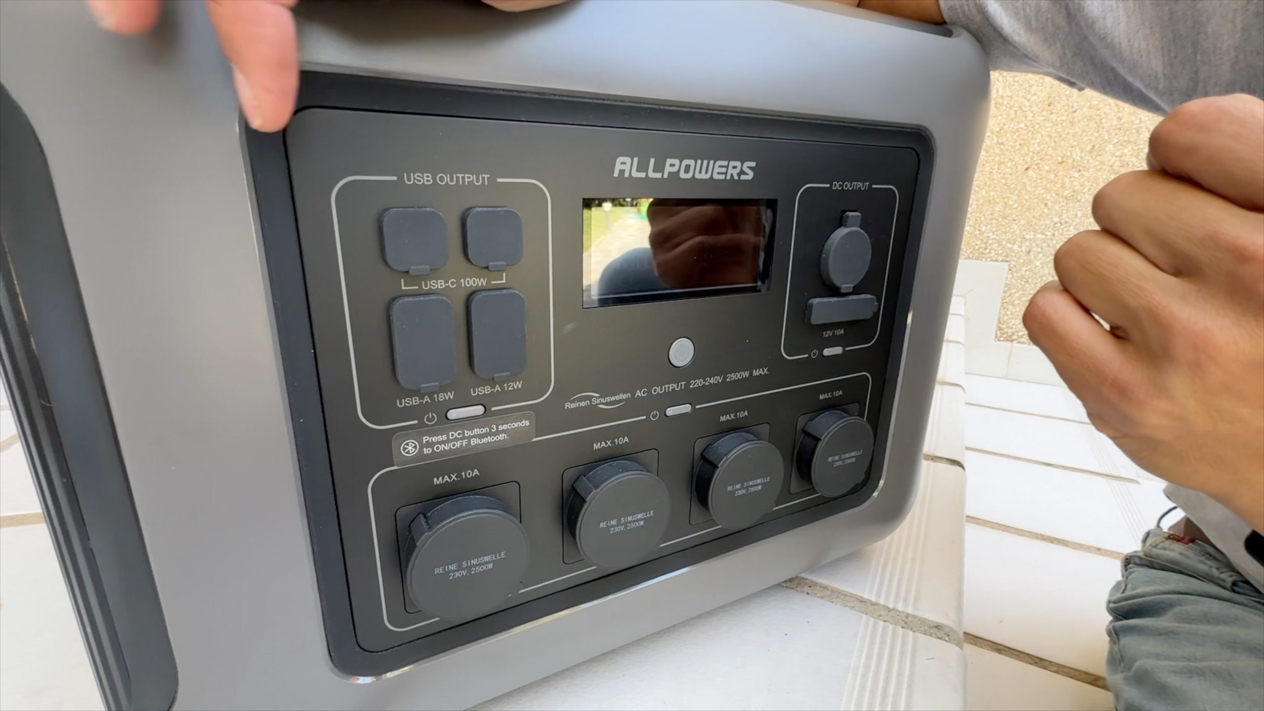 El corazón del sistema es la batería All Power R2500, una estación de carga portátil con 2.016 Wh de capacidad y una potencia de salida de hasta 2.500 W (con picos de 4.000 W). Está equipada con múltiples salidas: enchufes Schuko, tomas USB-A, USB-C, salida de mechero 12V, entre otras.