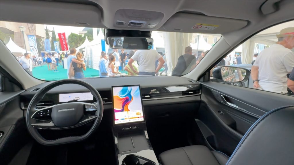 Al entrar, el interior sorprende por la calidad percibida: plásticos blandos, cuero en asientos y volante, costuras visibles y una pantalla central grande con Apple CarPlay y Android Auto. La marca ha cuidado mucho la sensación premium, que se nota en pequeños detalles.