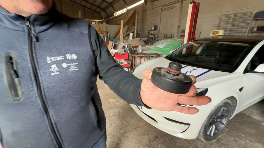 Para levantar un Tesla sin liarla, se usa el típico taco/adaptador que entra en los orificios de los bajos, para que el elevador no apoye sobre la batería. Ojo con esto, porque no todos los “tetones” valen: hay distintas medidas y conviene comprar el correcto para tu modelo.